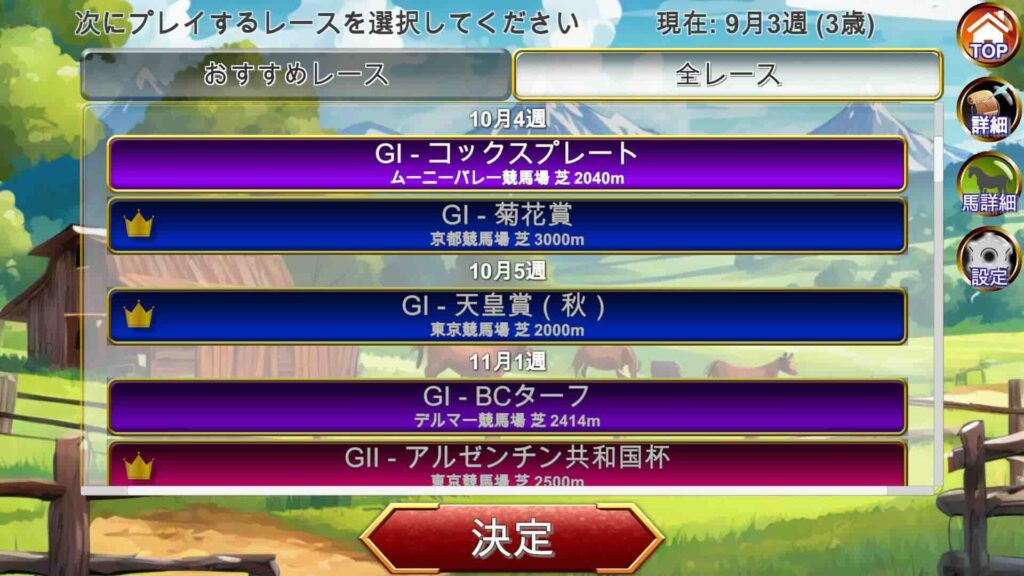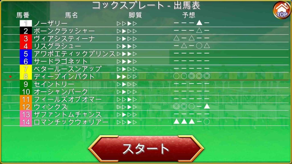 ※「かなり難しい・難しい」ではより能力の高い馬が選出される確率が高くなるよう変更