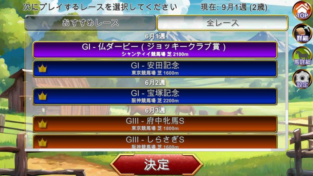 – 強い: Player馬よりも強い馬が数頭選出される