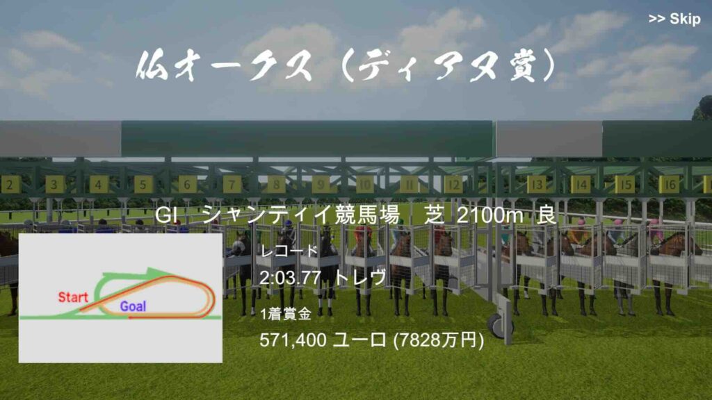 シャンティイ競馬場が追加され、関連するレースがプレイできるようになりました。